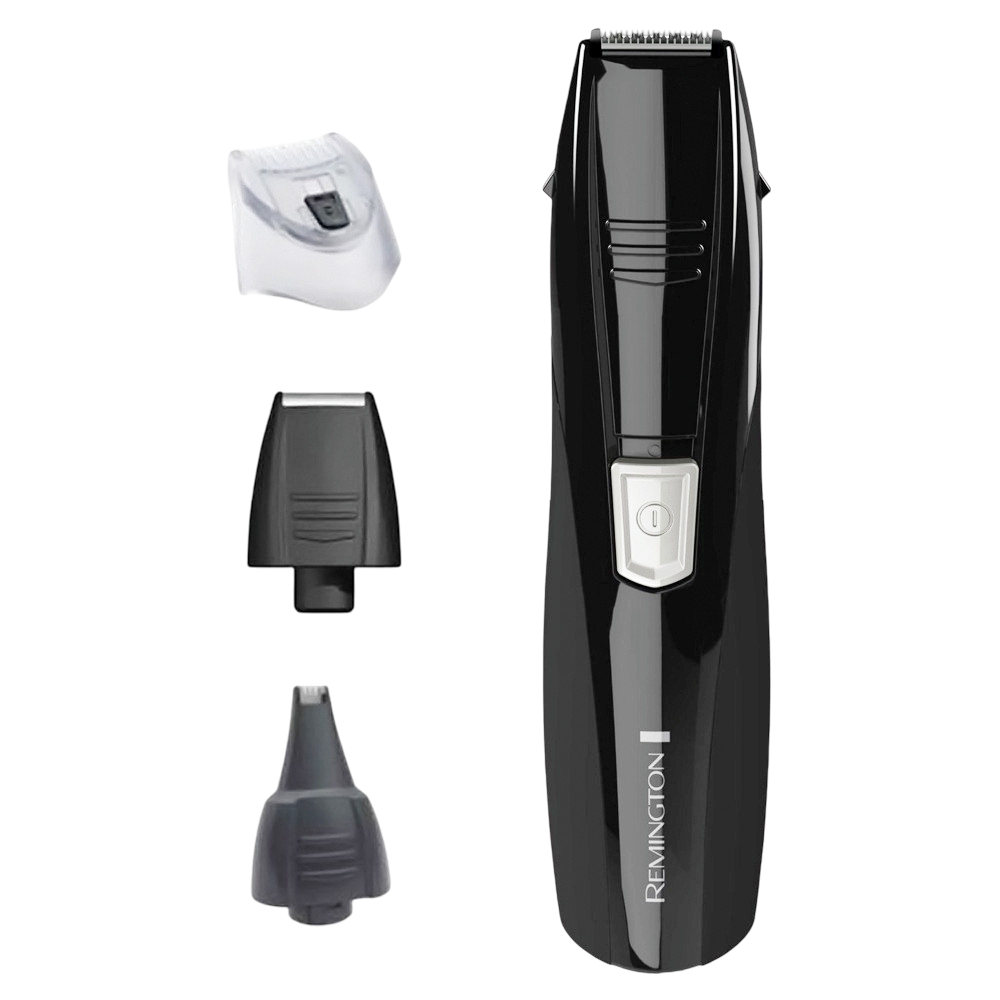 Afeitadora Remington 5 en 1 MOD PG181 recargable, cuenta con cabezales con movimiento conjunto e individual, corta patillas desplegables, es ideal para recortar, detallar y rasurar y es fácil de limpiar ya que sus accesorios son lavables.